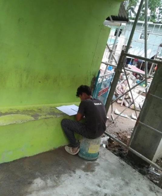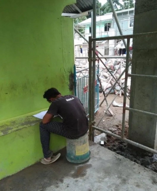 Ang viral post na ito ay mula kay Rael Jr Rael. Sa ibinahagi niyang larawan sa social media ay nakaupo ang batang “construction worker”sa isang timba habang nagsasagot ng kaniyang module. Ayon sa naturang post, dala-dala nito ang mga modules at sinasagutan sa tuwing “break” nila sa trabaho.