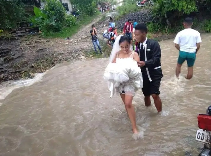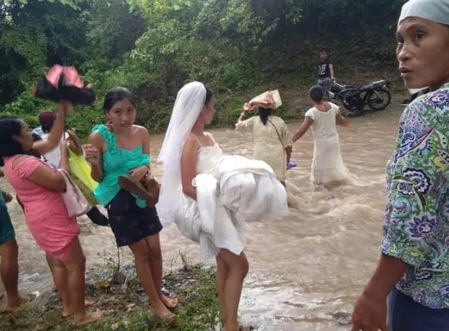 Sila ay walang iba kundi ang magkasintahang Ronil at Jeziel Guillepa. Itinuloy pa rin kasi nila ang kanilang pag-iisang dibdib sa Barangay Luyang sa Mabinay kahit pa grabe na ang baha dito dulot ng bagyo.
