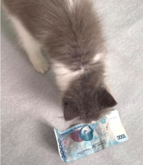 Natatawa man ay agad nitong tinanong ang kaniyang alaga kung saan niya ninanakaw ang perang dala-dala nito. Ibinahagi ito ni April Jean sa Facebook page na “Cats & Kittens Philippines”.
