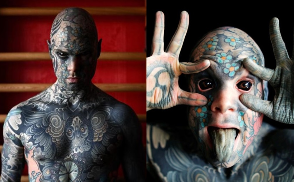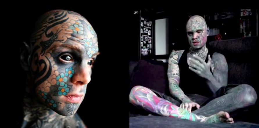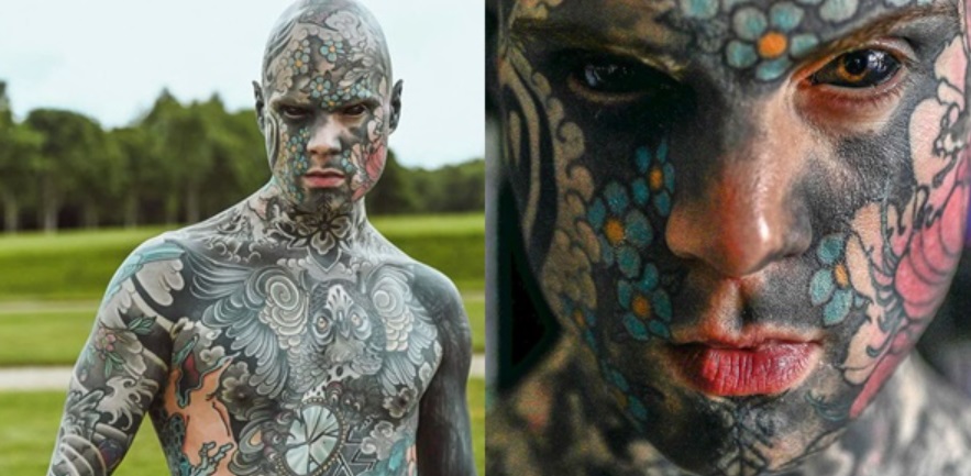 Talaga namang napakarami niyang mga “tattoo” sa katawan niya, mula ulo hanggang paa hanggang sa kaniyang dila ay mayroon nito. Maging ang kaniyang mga mata ay pinakulayan niya ng itim.