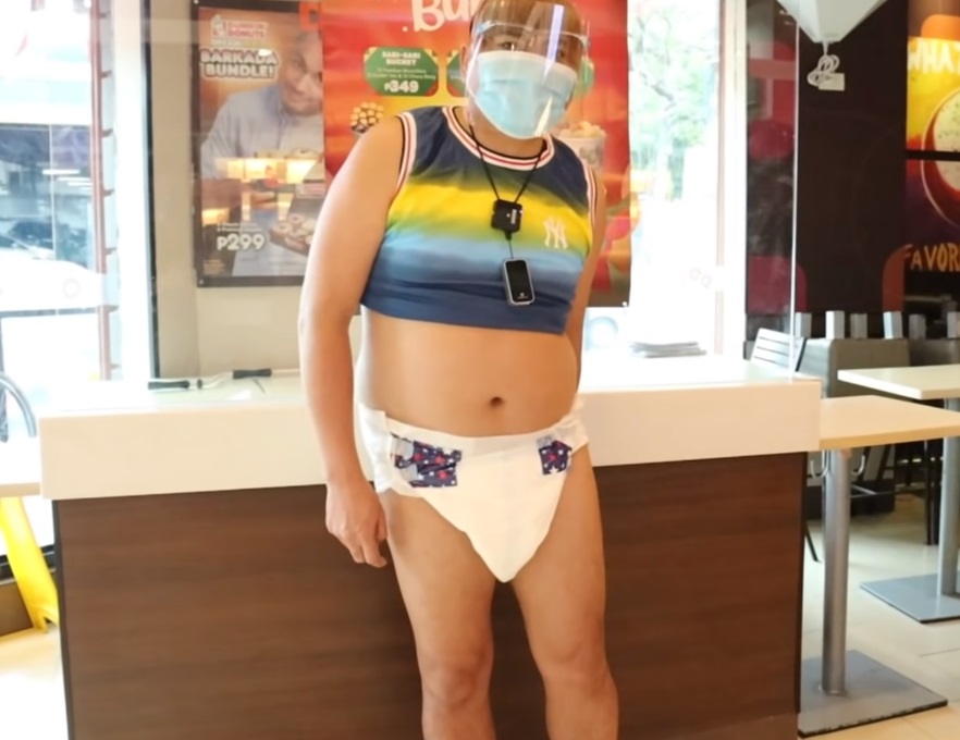 Si Donita ang naging ina sa “challenge” na ito habang si Tekla naman ang “baby”. Hamon pa ng una sa huli ay bumili raw ito ng “doughnut” at “dishwashing liquid” sa labas ng condo unit ni Tekla habang nakasuot siya ng “diaper”.