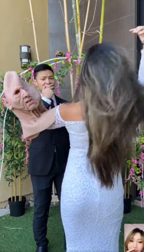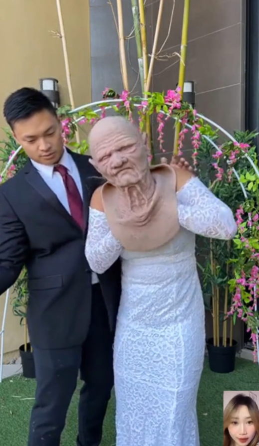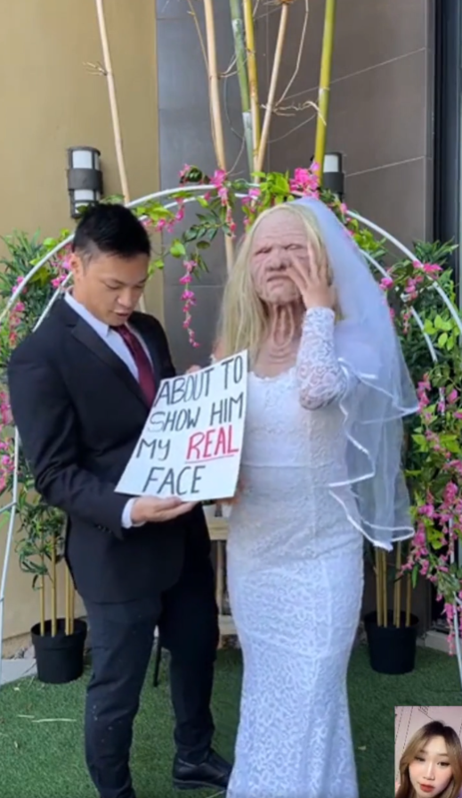 Ngunit habang nagpapatuloy ang video na mayroon nang libo-libong views ay mapapansin ang pagtatanggal niya ng kaniyang tila isang prosthetic makeup. Marami ang nasorpresa sa naging reaksyon ng lalaki na marahil ay nobyo o asawa ng babae sa video.